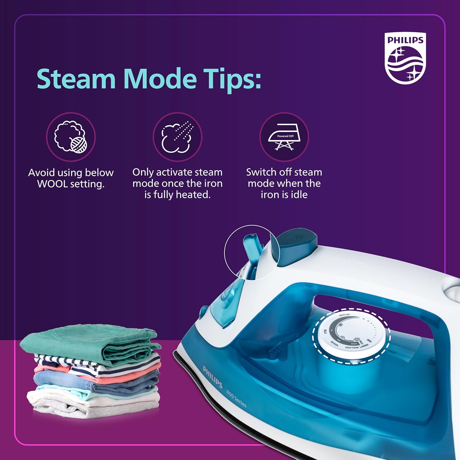 PERFECT RESULTS IN FEWER STROKES: The powerful continuous steam and the even heat distribution on soleplate ensures perfect ironing results in fewer strokes